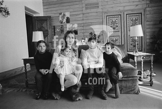 akg5195081 Farah Diba, ab 1959 Gemahlin des Schahs Mohammed Resa Pahlewi, 1967-80 Kaiserin (Schahbanu) des Irans; geb. am 14.10.1938 in Teheran. - Mit ihren vier Kindern während der Winterferien in der Schweiz, (v. li.) Farahnaz, Leila, Cyrus Resa und Ali Resa. - Foto, Anfang 1971. Copyright: For editorial use only.