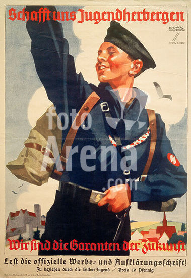 akg5314290 Jugendbewegung / Jugendherberge. Plakat, "Schafft uns Jugendherbergen", 1934. Entwurf, L.Hohlwein (1874-1949). Universum-Verlagsanstalt GmbH, Berlin. Offsetdruck, 59 x 42 cm. Inv. Nr. 23212. Gesserthausen, Schwäbisches Volkskundemuseum Oberschönenfeld. Museum: Berlin, Sammlung Archiv für Kunst und Geschichte.