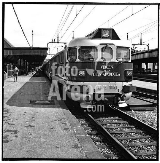akg5796029 Transport / Chemin de fer / Voyage en train. Le Catalan Talgo en gare de Genève. Train rapide Trans-Europ-Express, exclusivement de 1ère classe, reliant Genève à Barcelone de 1969 à 1982. Sur la locomotive est inscrit "Virgen de la Bien Aparecida" (Notre-Dame d'Aparecida). Photo, 1969.