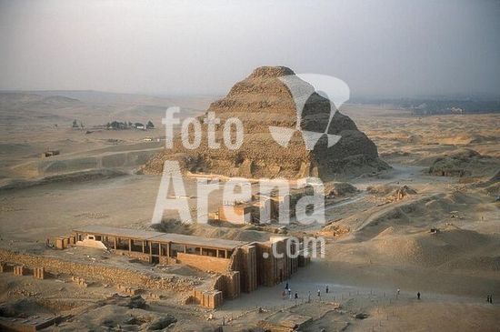 akg600447 Saqqara (also: Sakkara, Central Egypt), the Step Pyramid of King Djoser (3rd dynasty, c. 2609 - 2590 BC), built by Imhotep. General view of the Step Pyramid of Djoser in the middle of the pyramid complex of Saqqara. Photo.