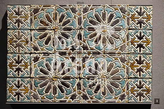 akg6155176 France, Paris, musée du Louvre, carreaux de revêtemnt mural, Maroc, 15eme-16eme siècle (?), céramique glaçurée, décor de cuerda seca.