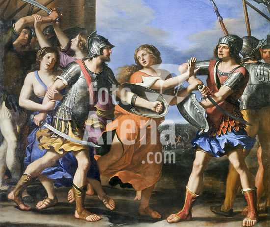 akg6155762 France, Paris, musée du Louvre, Giovanni Francesco Barbieri, dit Le Guerchin, 1591-1666, Hersilie séparant Romulus et Tatius, dit Lz combat des Romains et des Sabins, 1645.