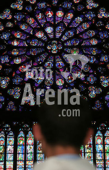 akg6374155 South rose window in Notre-Dame-De-Paris cathedral. Paris, France.