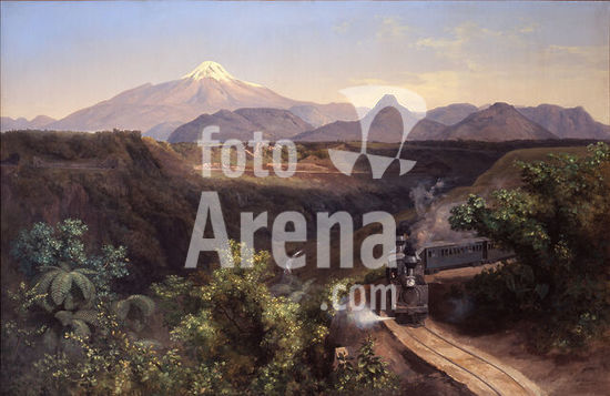 akg7258559 Velasco, José María, 1840-1912. "Cañada de Metlac" (The Metlac Ravine), 1893. (Railway between Orizaba and Córdoba, in the background the volcano Citlaltépetl / Pico de Orizaba). Oil on canvas, 104 × 160.5 cm.  . Constitutive Collection 1982. Inv. No. 13706. Mexico City, Museo Nacional de Arte.