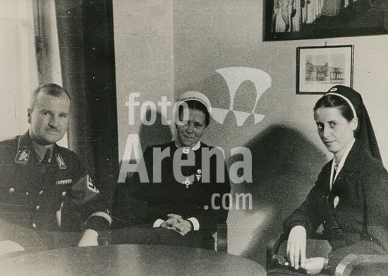 akg7411880 Ernst Robert Grawitz*08.06.1899-24.04.1945+Mediziner, Offizier der Waffen-SS1937-1945 geschaeftsfuehrender Praesident des DRK- v.l. Grawitz, Generaloberin Luise v. Oertzen, DRK - Schwester Helene Bertelmann- 1939OT: Die Reichssiegerin im Reichsberufswettkampf 1939 DRK-Schwester Helene Bertelmann aus dem Mutterhaus Essen und Frau Generaloberin v. Oertzen aus dem DRK-Praesidium beim Geschaeftsfuehrenden Praesidenten des Deutschen Roten Kreuzes SS-Brigadefuehrer Dr. Grawitz.Bild entstammt einer Serie. Weitere Abzuege siehe Inventarnummer.