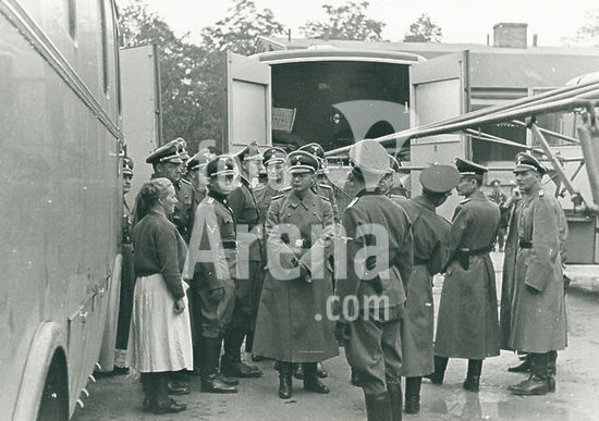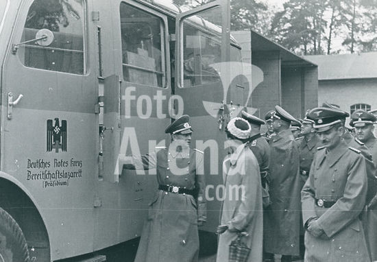 akg7414055 Der Geschäftsführende Präsident des DRK, Ernst Robert Grawitz (nicht im Bild) besichtigt das Bereitschaftslazarett auf dem Gelände des DRK - Hauptlagers in Potsdam - Babelsberg- September 1940OT: SS-Brigadeführer Dr. Grawitz besichtigt das DRK-Bereitschaftslazarett in Babelsberg mit SS-Führern der Dienststellen Reichsarzt SS und Sanitätsinspektion der Waffen SS.