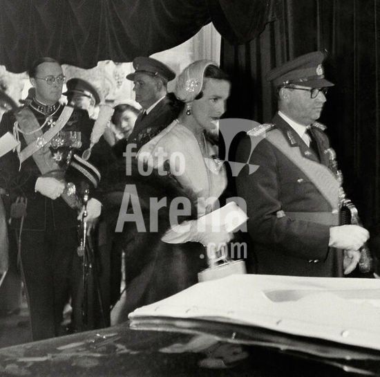 akg7678619 Felix of Bourbon-Parma, Prince (Grand Duchess Charlotte) of Luxembourg. 28.9.1893 Schwarzau - 8.4.1970 Fischbach (Luxembourg). Marriage of Jean of Luxembourg with Princess Josephine Charlotte of Belgium: Felix of Bourbon-Parma with Mary Lilian Baels, second wife of King Leopold III of Belgium, followed by Prince Bernhard of the Netherlands. Photo, 9.4.1953.
