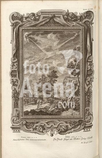 akg7678782 The atmosphere of the arsenal, Parallel Title: The Haze Ball as God's Stuff Hausz, Signed: M. Tyroff sculps, copperplate engraving, plate DLXII, Füssli, Johann Melchior; Tyroff, Martin (sculps.), 1731, Johann Jakob Scheuchzer: Kupfer-Bibel (...). Augspurg und Ulm: gedruckt bey Christian Ulrich Wagner, 1731-1735.