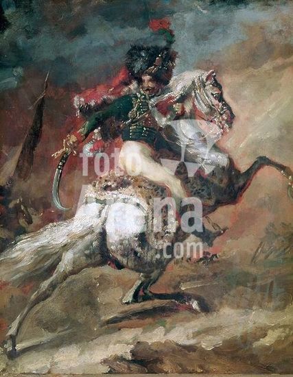 akg809986 Géricault, Théodore. 1791-1824. "Officier de chasseurs à cheval de la garde impériale" (Hunt Officer of the Imperial Guard on Horseback), 1812. Study. Oil on canvas, 43 × 35.5 cm. Rouen, Musée des Beaux-Arts. Museum: Rouen, Musée des Beaux-Arts.