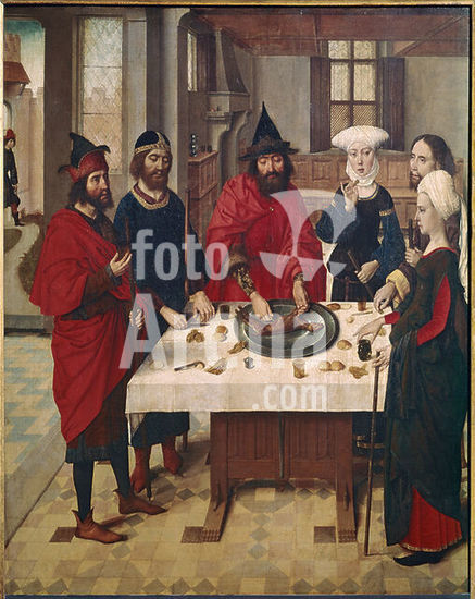 akg827212 Bouts, Dieric. c. 1410/20 - 1475. "The Passover feast of the Jews", 1464/67. Left wing, lower half of The Holy Sacrament Altarpiece. On wood, 88 × 71 cm. St Pieterskerk, Leuven (Belgium).
