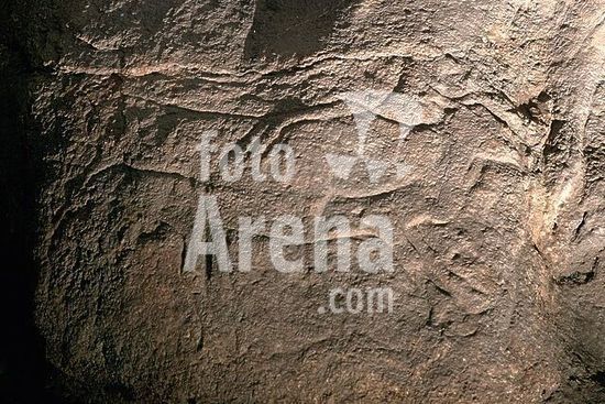 akg985257 Höhle / Grotte d'Isturitz (Vallée de l'Arberoue, Dép.Pyrénées-Atlantiques, Baskenland, Aquitanien, Frankreich).-Kalksteinpfeiler mit sich überlagernden Rentieren.-Altsteinzeitlich.
