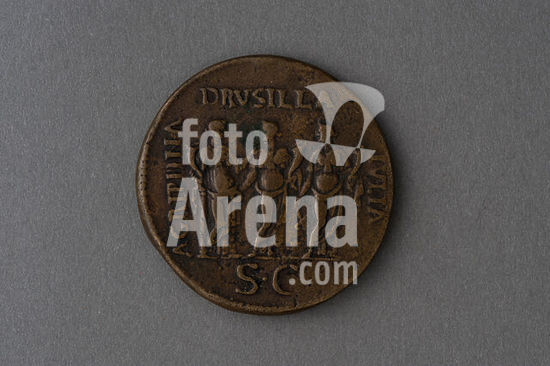 akg6152936 Statue of Antonia Minor as Venus Genetrixalso known as Julia Antonia Minor or Antonia the Younger (36 BC - AD 37) Daughter of Mark Antony and Octavia Minor and niece of the Emperor Augustus.mid-1st century AD (Claudian age)MarbleFrom Baia (Italy)Bacoli, Museo Archeologico dei Campi Flegrei nel Castello di Baia - Right: Statue of Augustus (Roma Emperor. 27 BC - 14 AD)First half of the 1st century ADWhite marbleFrom AquileiaMuseo Archeologico Nazionale. Aquilea (Italy)- Exhibition 'Ovid: Loves, Myths and Other Stories' in Rome. Scuderie del Quirinale. 2018.