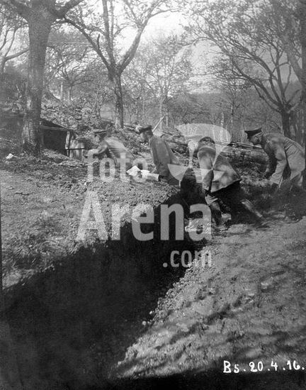 akg382958 History / World War 1 / France. Battle of the Somme: French soldiers at the entrance to the trenches. Photo, anon., undated, c. 1916 (?), written by hand: "Dans la Somme. Entrée des Catacombes". Berlin, Sammlung Archiv für Kunst und Geschichte. Museum: Berlin, Sammlung Archiv für Kunst und Geschichte.