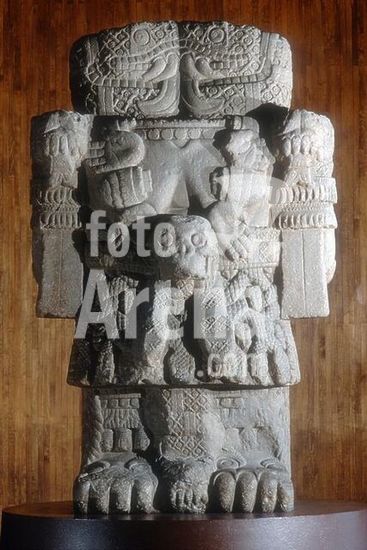 akg967326 Old Mexican, Teotihuacan.-Priest wearing resplendent robes with head dress in the shape of a crocodile; either sowing seeds or using an incense burner during a ritual ceremony.-Wall painting (reconstruction), polychrome, c.1-750 BC. Teotihuacan, Tepantitla.