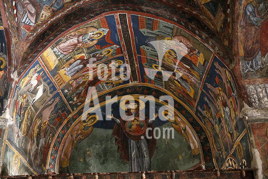 akg259227 Huejotzingo (Puebla, Mexico), Church of the Franciscan monastery Huejotzingo. (built 1544-60 and 1564-71). Procession of flagellants. Grisaille fresko, unknown Indian master, bottom row.