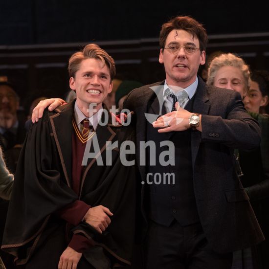 2511N01_F7007 Tom Felton, Aidan Close on stage for THE CURSED CHILD Curtain Call on Broadway, The Lyric Theatre, New York, NY, November 11, 2025. Photo By: Simon Lindenblatt/Everett Collection/ Fotoarena