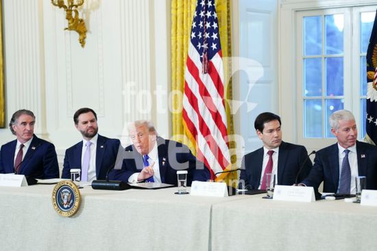 ny090126183212 President Donald Trump speaks during a meeting with oil and gas executives in the East Room of the White House in Washington, on Friday, Jan. 9, 2026. Ahead of the meeting, President Trump suggested on social media on Friday that big oil companies would invest ?at least? $100 billion in Venezuela, although he did not elaborate. From Left: Secretary of the Interior Doug Burgum, Vice President JD Vance, Trump, Secretary of State Marco Rubio, Secretary of Energy Chris Wright. (Tierney L. Cross/The New York Times/Fotoarena)