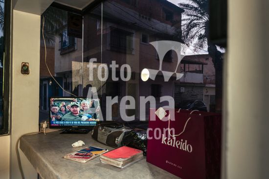 ny030126111311 A television in Caracas Venezuela, displays news coverage of the U.S. strike against the country on Saturday, Jan. 3, 2026. The text on the screen translates as ÒThe country is demanding proof of life from the U.S. regarding President Maduro.Ó (The New York Times)
