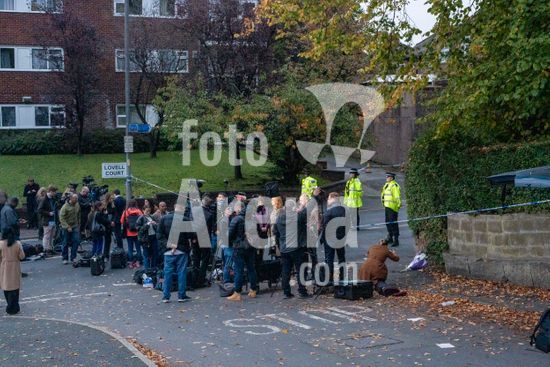 ny021025154412 Members of the media near police officers guarding the scene of a stabbing at Heaton Park Hebrew Congregation synagogue in Manchester, England, on Thursday, Oct. 2, 2025. A man attacked a synagogue in Manchester on Thursday, using a car and a knife to kill two people and injure four others on Yom Kippur, the holiest day in the Jewish calendar. (Andrew Testa/The New York Times/Fotoarena)