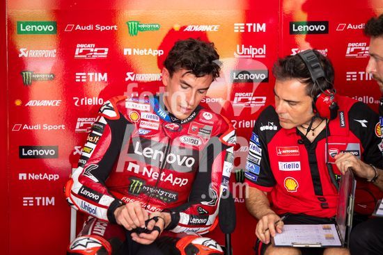 2909083 Treinos oficiais para a segunda etapa da Moto GP no Autódromo Internacional Ayrton Senna, neste sábado (21). No destaque, o piloto Marc Marquez, da Equipe Ducati Lenovo Team.