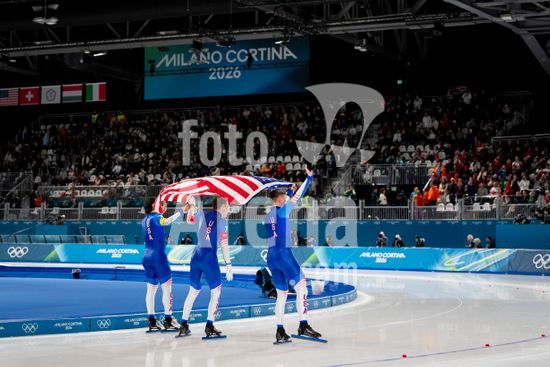 ny150226203011 United States players celebrate after winning the Men's Hockey Preliminary round between the United States and Germany at the 2026 Milan Cortina Winter Olympics at the Milan Santagiulia Ice Hockey Arena in Milan, Italy, on Sunday, Feb. 15, 2026. (Vincent Alban/The New York Times/Fotoarena)