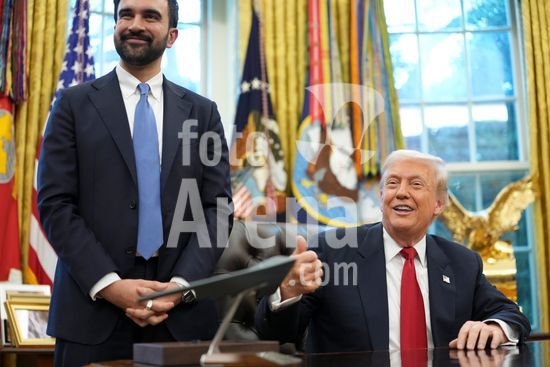 ny211125175711 President Donald Trump gestures to New York Mayor-elect Zohran Mamdani as they speak to reporters in the Oval Office of the White House in Washington, on Friday, Nov. 21, 2025. (Eric Lee/The New York Times/Fotoarena)