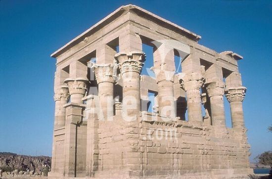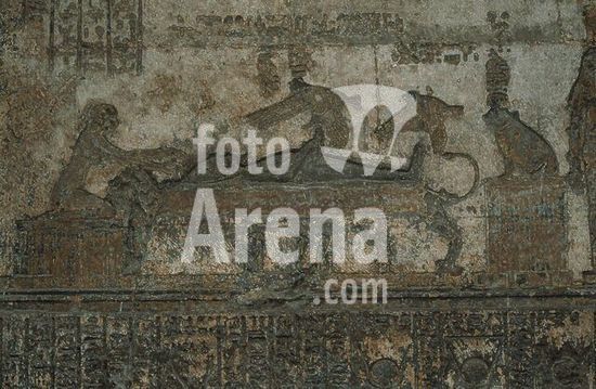 akg896193 Dendera (Ägypten), Hathortempel (Zeit des Augustus, um 30 v.-14 n.Chr.).-Der tote Osiris (?).-Relief im inneren Raum der westlichen Osiris-Dachkapelle.