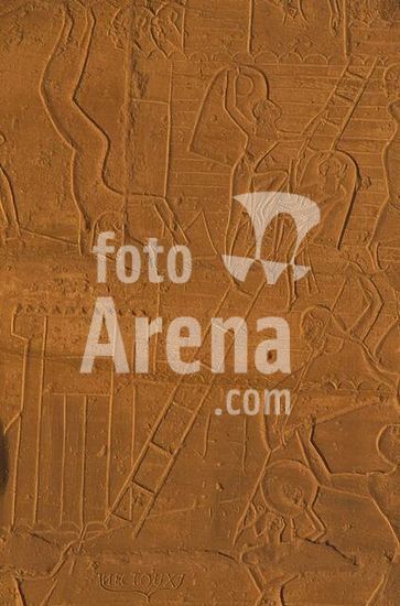 akg896255 Egypt, New Kingdom, 19th dynasty / Ramses II's campaigns in Syria / Undecided battle near Kadesh at the Upper Orontes 1285 BC between Egyptians and Hittites under Muwatallis.-Storming of a battlement.-Relief, Egyptian, c.1265 BC, Thebes West (Upper Egypt), Ramesseum, Courtyard side of the 2nd pylon.