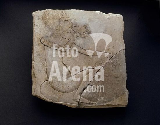 akg1129027 Ägyptisch, Neues Reich, 18./19. Dynastie, um 1300-1200 v.Chr.-Betender Mann.-Relieffragment, Kalkstein, bemalt. Herkunft unbekannt. Inv.Nr.1870. Museum: Roemer-Pelizaeus-Museum., Hildesheim.