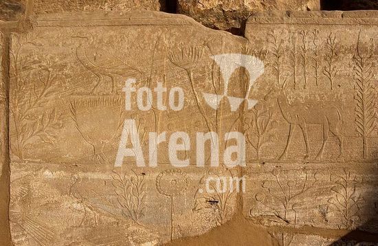 akg420183 Karnak (Upper Egypt), Temple of Amun-Re, Akhmenu - Festival Temple o. Thutmose III. (New Kingdom, 18th Dynasty, c. 1450 BC). Section of the so-called "Botanical Garden"with exotic plants and animals. Relief, sandstone. Photo.