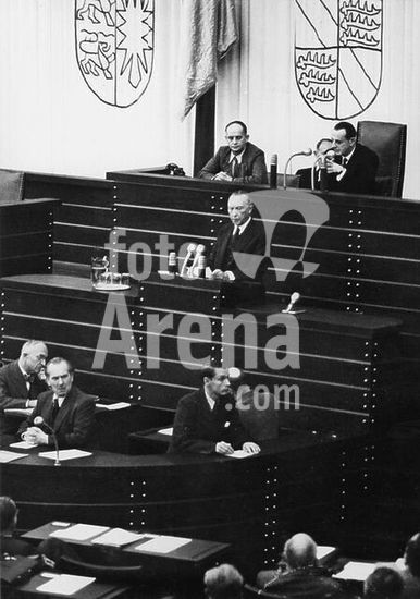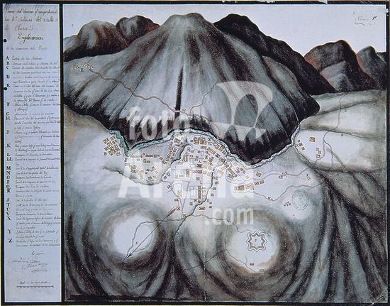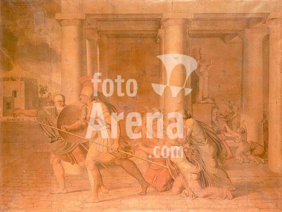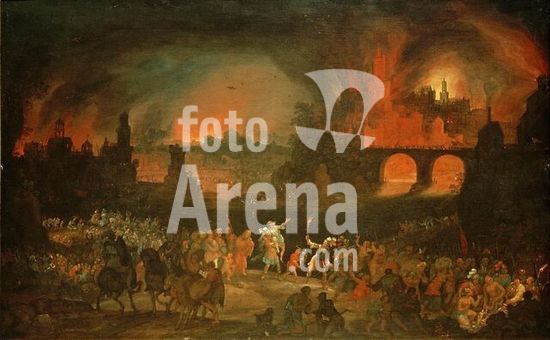 Mantua-Mantova (Lombardy, Italy), Palazzo Ducale, Castello S.Giorgio, Camera degli Sposi (frescos, c.1465-74, by Andrea Mantegna; 1431-1506).-Interior view looking northwest: west wall with "Meeting between Ludovico III Gonazaga and his son Francesco", north wall with "Court of Ludovico III".-Photo.