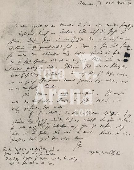 akg1147556 Kotzebue, August von; Dramatiker Weimar 3.5.1761-(ermordet) Mannheim 23.3.1819.-Brief von Kotzebue, Goethe betreffend: "... Dieser Herr ist der Einzige, der mir auf meine Octavia nicht geantwortet hat, daher ich für gut finde, sie ... sogleich zurück zu fordern (...)".-Weimar, 21. November 1799.