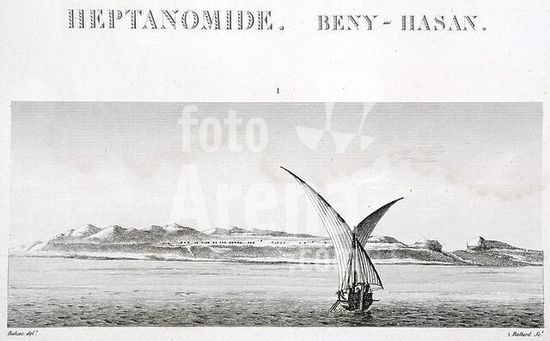 akg810131 Antinoë / Antinoopolis (Ägypten), römischer Triumphbogen.-"Antinoë / Vue de l'Arc de Triomphe".-Kupferst. von A.B.Duhamel nach Zeichnung von François-Michel Cécile. Aus: Description de l'Égypte, Paris 1809 ff., Bd.IV, Tf.57 (Ausschnitt). Museum: Private Collection., KAIRO.