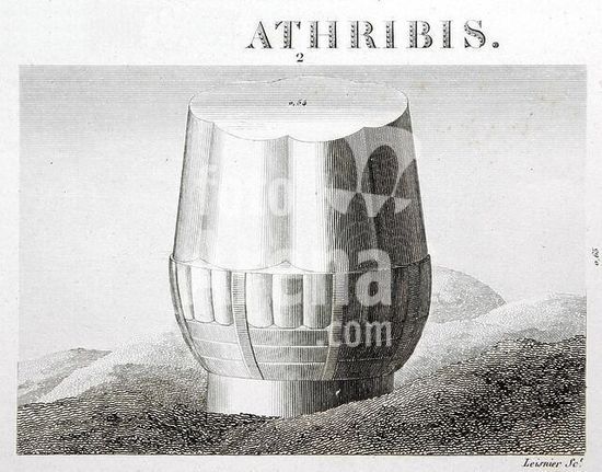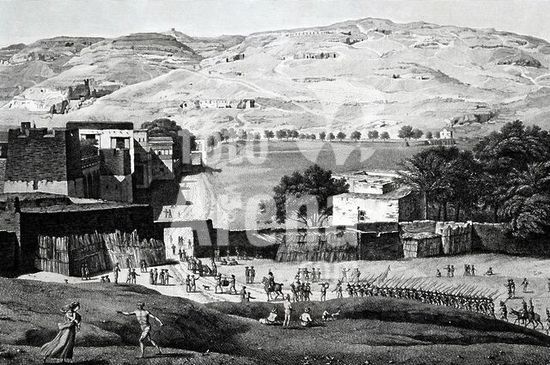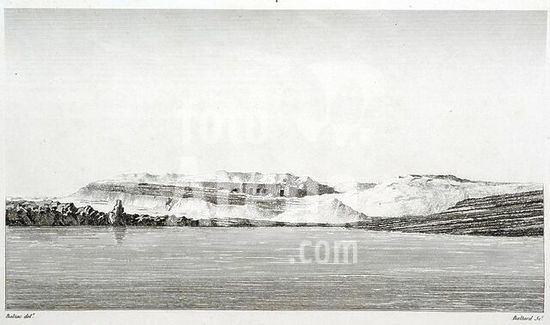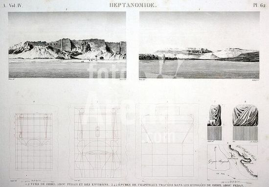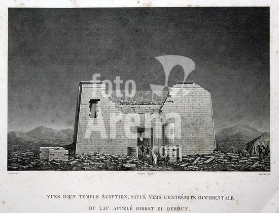 akg810175 Antaeopolis / Qaw el-Kebir (Ober-ägypten), Tempel (ptolemäisch).-"Qâou el Kebyreh (Antaeopolis) / Vue perspective du temple".-Kupferst. von Duparc nach Edme-François Jomard (1777-1862) und Gaspard Antoine Chabrol. Aus: Description de l'Égypte, Paris 1809 ff., A.Bd.IV, Tf.42. Museum: Private Collection., KAIRO.
