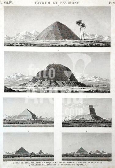 akg810234 Begig / Abgig, bei Medinet el-Fayum (Oase Fayum, Mittelägypten), Obelisk des Jeperkara-Senusert (Mittleres Reich, 12.Dynastie). /-"Fayoum / Vue et détails de l'obelisque de Begyg". / Kupferst. von Geissler. Aus: Description de l'Égypte, Paris 1809 ff., A.Bd.IV, Tf.71. Museum: Private Collection., KAIRO.