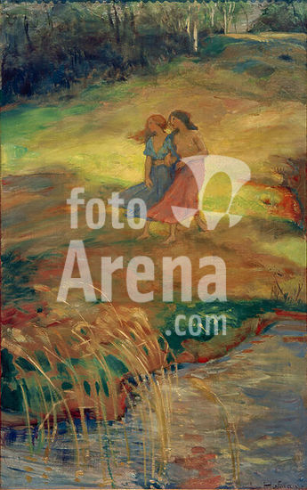 akg325663 Macke, August. 1887-1914. "Landschaft mit drei Mädchen" (Abendlandschaft mit drei Mädchen). (Landscape with three girls / Evening landscape with three girls), c. 1911. Oil on card, 55 × 63.5 cm. Inv. no. G 684. Wuppertal, Von der Heydt-Museum. Museum: Wuppertal, Von der Heydt-Museum.