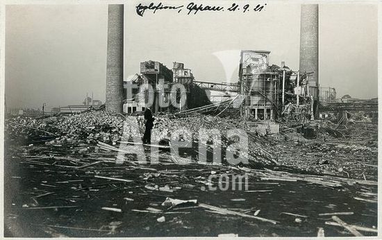 akg1642554 Unfall und Unglück / Explosion:-Explosion des Stickstoffwerkes der BASF in Oppau, Pfalz, heute Stadtteil von Ludwigshafen am Rhein, (Deutschland), 21. September 1921 (größte Chemiekatastrophe der BASF und der Stadt Ludwigshafen, 561 Tote): Zerstörungen auf dem Werksgelände.-Pressefoto. Museum: Coll. Archiv f. Kunst Geschichte., BERLIN.