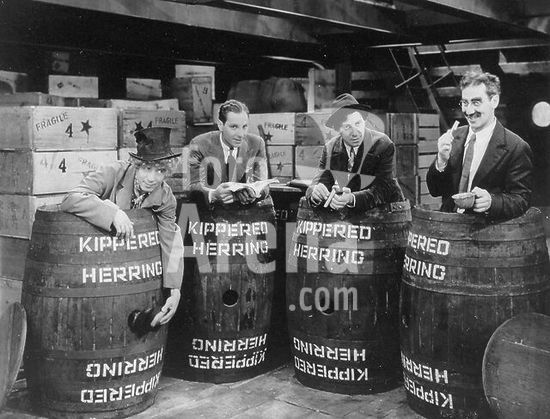 alb250133 HARPO MARX, THE MARX BROTHERS, CHICO MARX, GROUCHO MARX and ZEPPO MARX in PISTOLEROS DE AGUA DULCE (1931) -Original title: MONKEY BUSINESS-, directed by NORMAN Z. MCLEOD. English title: MONKEY BUSINESS. Portuguese title: OS QUATRO BATUTAS.