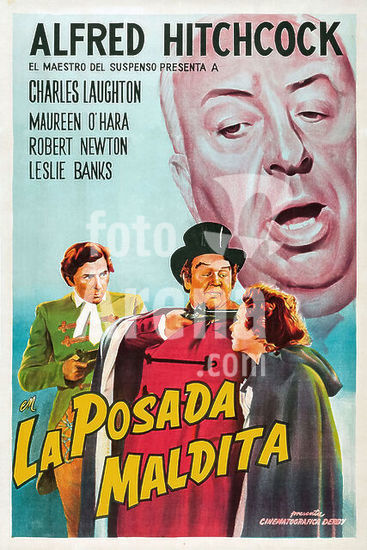 alb18024176 MAUREEN O'HARA, ROBERT NEWTON, CHARLES LAUGHTON and ALFRED HITCHCOCK in LA POSADA DE JAMAICA (1939) -Original title: JAMAICA INN-, directed by ALFRED HITCHCOCK. English title: JAMAICA INN. Portuguese title: A POUSADA DA JAMAICA.
