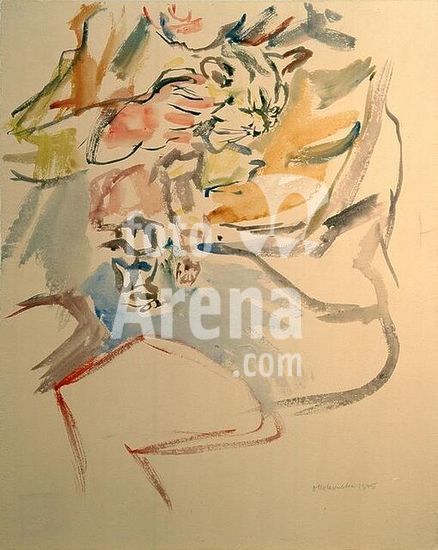 akg825433 Kokoschka, Oskar 1886-1980. "Doris with a Cat", 1945. Water colour, 63 x 50 cm. Vienna, Wienerroither & Kohlbacher.