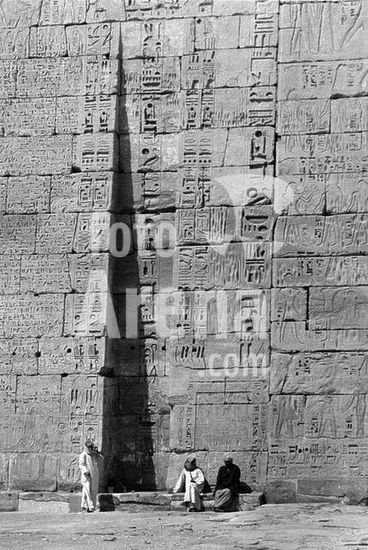 akg895867 Dendera (Ägypten), römisches Mammisi (erbaut im 2.Jh. unter Trajan für den Kult der Geburt des göttlichen Kindes), Säulenschranken mit Reliefdarstellugen.-Teilansicht.-Foto, undat.