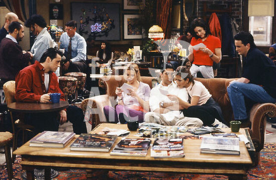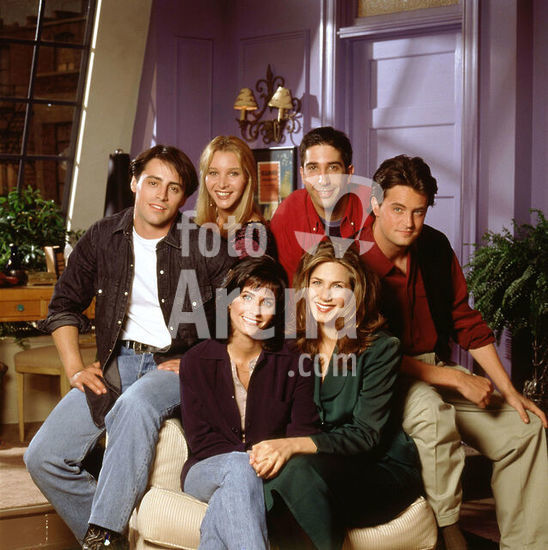 alb846350 COURTENEY COX, MATTHEW PERRY, LISA KUDROW, JENNIFER ANISTON, MATT LEBLANC and DAVID SCHWIMMER in FRIENDS (1994), directed by PETER BONERZ, GARY HALVORSON, JAMES BURROWS, MICHAEL LEMBECK and GAIL MANCUSO. English title: FRIENDS. Portuguese title: FRIENDS.