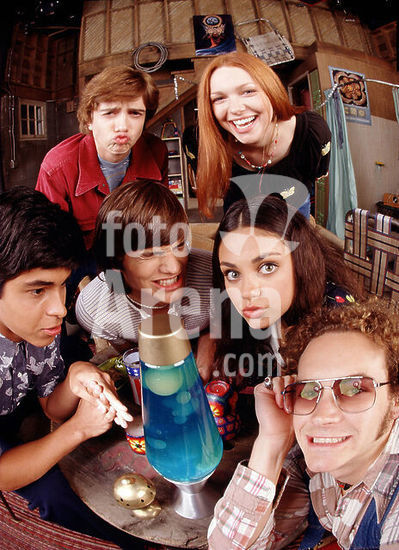 alb2095467 ASHTON KUTCHER, MILA KUNIS, TOPHER GRACE, MASTERSON, DANNY, LAURA PREPON and WILMER VALDERRAMA in AQUELLOS MARAVILLOSOS 70-TV (1998) -Original title: THAT '70S SHOW-TV-. English title: THAT '70S SHOW.