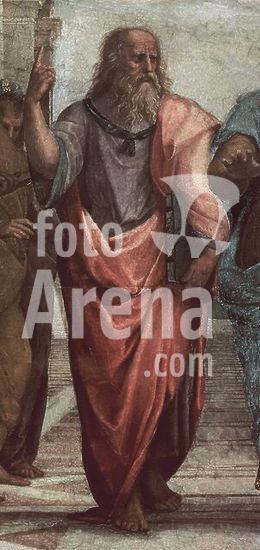 orz236151 'The School of Athens. Detail of Plato', 1510, Fresco, Before restauration. Author: RAFAEL SANZIO O RAFAEL DE URBINO (1483-1520). Location: MUSEOS VATICANOS-ESTANCIA DEL SELLO. VATICANO. PLATO. LEONARDO DA VINCI.