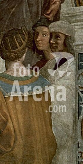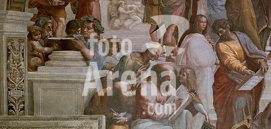 orz236153 'The School of Athens (detail)', 1510, Fresco, Before restauration. Author: RAFAEL SANZIO O RAFAEL DE URBINO (1483-1520). Location: MUSEOS VATICANOS-ESTANCIA DEL SELLO. VATICANO. JESUS. Raphael. INFANT JESUS. PERUGINO.