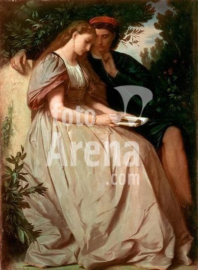 akg040223 Feuerbach, Anselm. 1829-1880. "Paolo and Francesca", 1864. (Figures from Dante, Divine Comedy. Paolo Malatesta and Francesca da Rimini discover their love during the reading of Lancelot). Oil on canvas, 135 × 98cm. Munich, Schack-Galerie. Museum: Munich, Schack-Galerie.