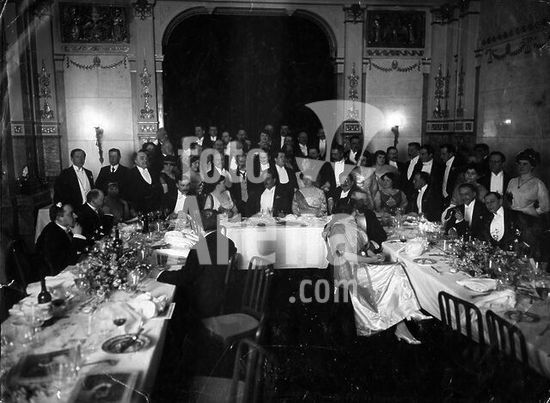 akg176288 Puccini, Giacomo, 1858 - 1924, Italian composer. Banquet in honour of Puccini at the Hotel Bristol in Berlin on 27th March 1913 (?). Puccini (centre, sitting) behind him the conductor Ignaz Waghalter and on his right the singer Elisabeth Böhm van Endert. Photo, (Rembrandt, Charlottenburg). Berlin, Sammlung Archiv für Kunst und Geschichte. Museum: Berlin, Sammlung Archiv für Kunst und Geschichte.