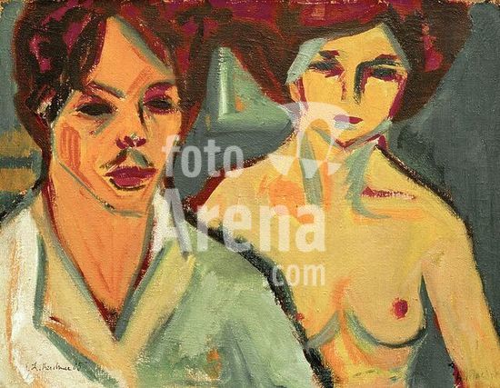 akg195034 Kirchner, Ernst Ludwig Painter, graphic artist and sculptor Aschaffenburg 6.5.1880 - (suicide). Frauenkirch nr. Davos 15.6.1938. "Self-portrait with Model", 1905. Oil on canvas, 54.5 × 70cm. Private Collection.
