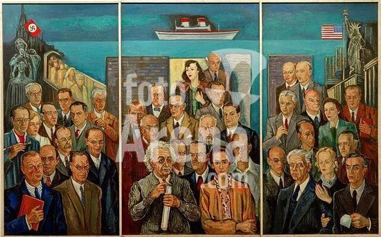 akg220548 Kaufmann, Arthur. 1888-1971. "Die geistige Emigration" (The Spiritual Emigration), 1929. Triptych. Oil on canvas, 211 × 343cm. Mülheim an der Ruhr, City Museum. Museum: Mülheim an der Ruhr, City Museum. Copyright: © Arthur Kaufmann. This artwork is not in the public domain. It is your responsibility to obtain all necessary third party permissions from the copyright handler in your country prior to publication.