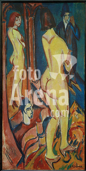 akg251053 Kirchner, Ernst Ludwig. 1880-1938. "Rückenakt mit Spiegel und Mann", (Back view of a nude standing in front of a mirror and man), 1912. Oil on canvas, 150 × 75,5 cm. Berlin, Brücke Museum. Museum: Berlin, Brücke Museum.